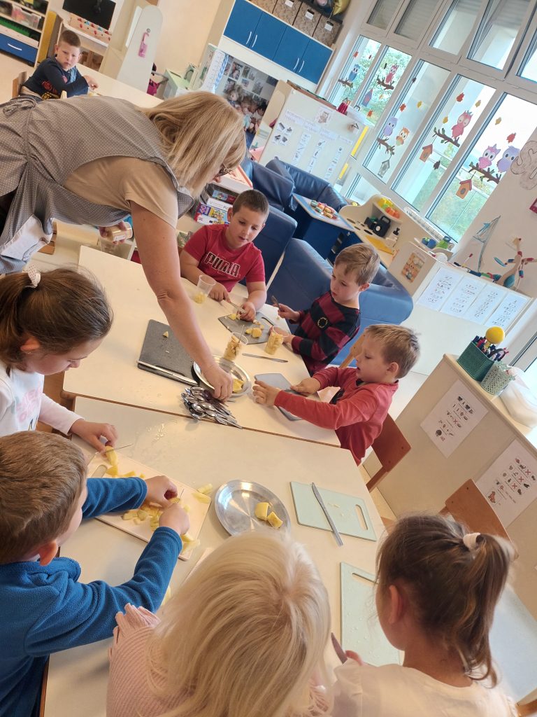 Vrijedne su ruke rezale jabuke, pripremale ukusnu voćnu salatu i, naravno, s užitkom grickale sočne jabuke