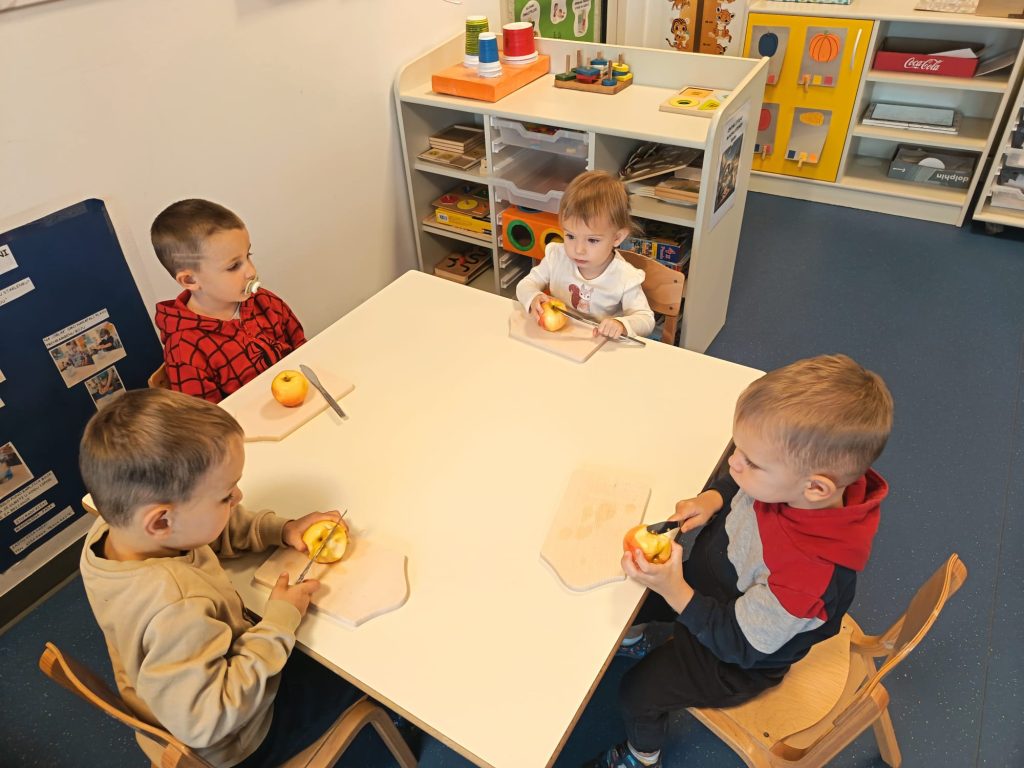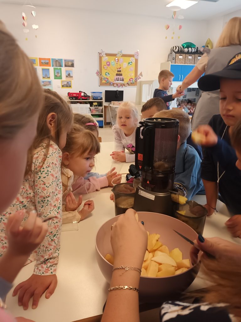 Djeca su kroz različite aktivnosti istraživala, kušala, mirisala i stvarala s jabukama. Neki su cijedili sok od svježih jabuka, drugi su slikali jabukama poput pravih malih umjetnika, a u nekim skupinama djeca su istraživala građu jabuke i otkrivala što se sve krije u njezinoj unutrašnjosti.