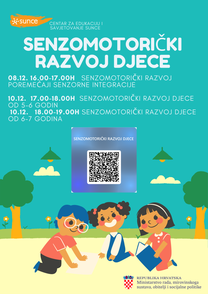 Prijaviti se možete putem QR koda, linka: SENZOMOTORIČKI RAZVOJ DJECE – Ispunite obrazac ili putem maila nusa.kapovic@ti-si-sunce.hr.